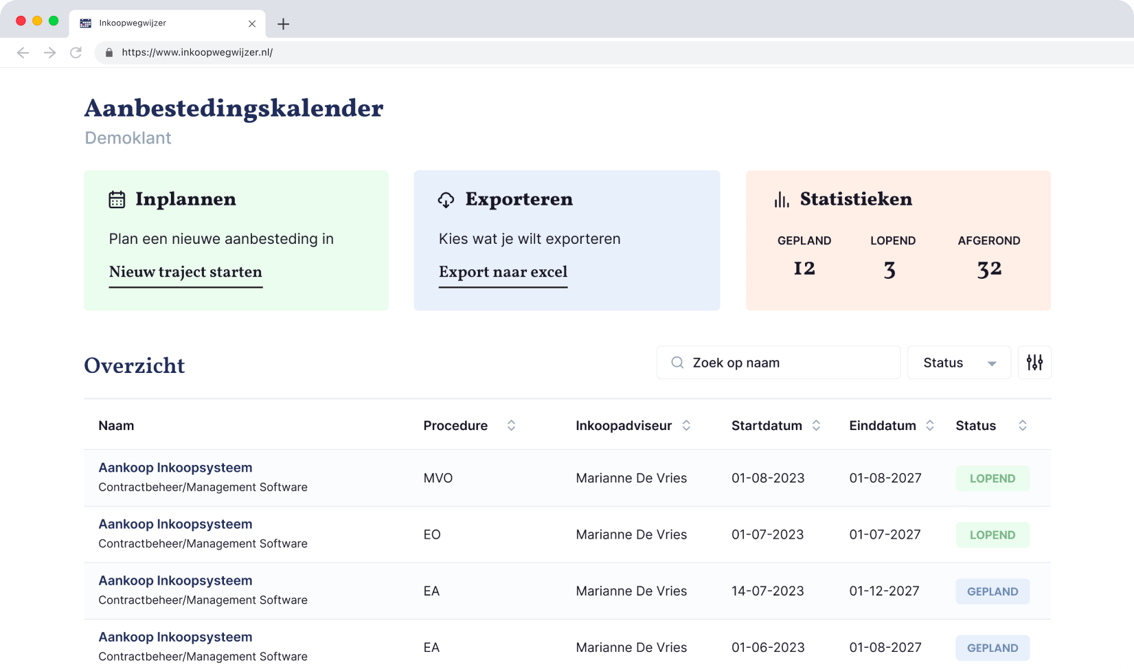 De inkoopwegwijzer is bedoelt voor (overheids) instellingen die zich bezighouden met aanbestedingen en naast het beheren van hun aanbestedingen ook graag informatie met aangesloten instellingen willen delen.